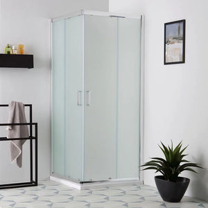 Si caratterizza per un telaio in alluminio cromato. Le ante ad apertura scorrevole sono in vetro satinato da 6 mm, con meccanismo di scorrimento superiore e sgancio rapido inferiore.