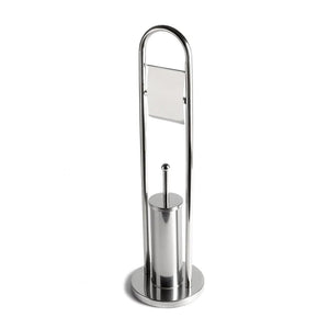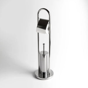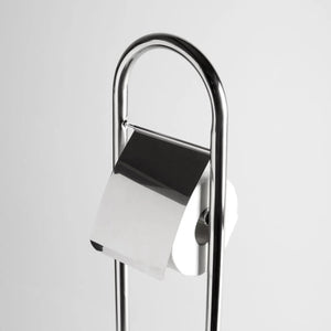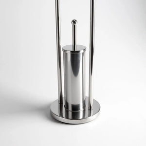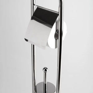 Piantana porta rotolo coperto e porta scopino "Amélie" in metallo cromato con base tonda