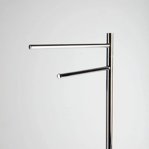 Piantana d'appoggio Clara con 2 bracci porta salviette snodabili in acciaio cromato da 32 cm.